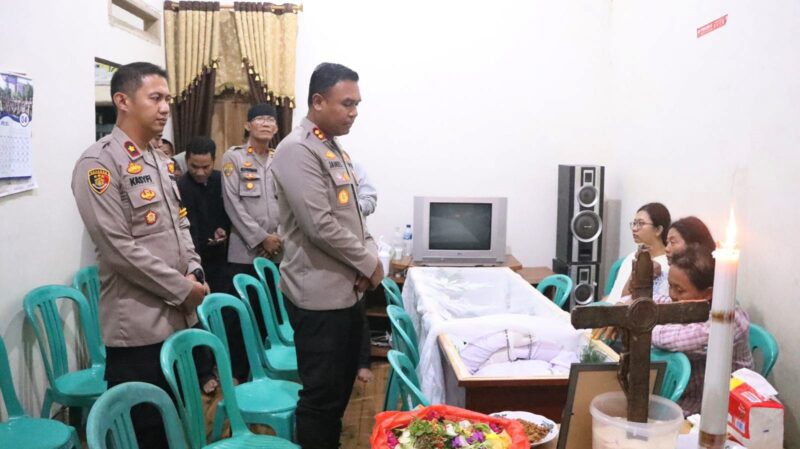 Prioritastv.com, Tulang Bawang – Kapolres Tulang Bawang, Polda Lampung, AKBP James H Hutajulu, SIK, SH, MH, MIK, didampingi Wakapolres, Kompol M Kasyfi Mahardika, SIK, SH, MM, PJU Polres, dan Kapolsek Penawartama, AKP Suherman, melayat langsung ke rumah duka salah satu tenaga kesehatan (Nakes) yang meninggal dunia (MD) saat sedang bertugas pada Operasi Ketupat Krakatau 2024.