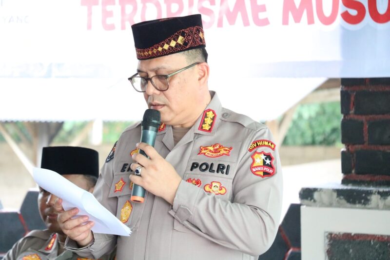 “Kami ucapkan selamat datang kepada Tim dari Div Humas Polri yang telah berkenan hadir di Ponpes Nuruss’adah Barokatul Qodiri, Kampung Panca Mulia, dalam kegiatan literasi kontra radikal yang mengusung tema terorisme musuh kita bersama,” kata AKBP James.