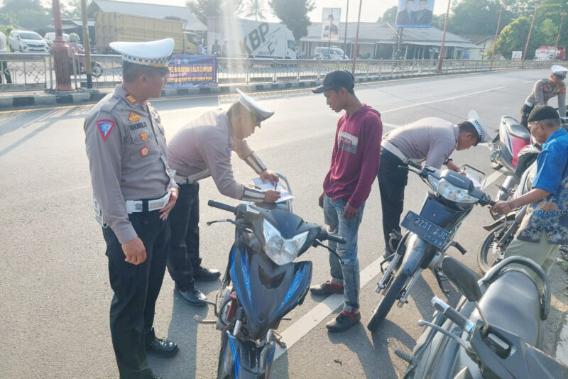 “Adapun rincian dari 50 (lima puluh) pelanggaran tersebut yakni 14 (empat belas) sepeda motor tanpa dilengkapi surat kendaraan, satu unit mobil tanpa dilengkapi surat kendaraan, 6 (enam) pelanggaran ODOL, 6 (enam) knalpot brong, 15 (lima belas) tidak menggunakan helm, 5 (lima) bonceng tiga, dan 3 (tiga) tidak memiliki surat izin mengemudi (SIM),” papar perwira dengan balok kuning tiga dipundaknya.