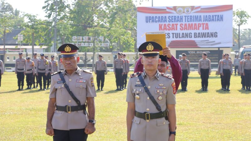 Upacara Sertijab ini dipimpin langsung oleh Kapolres Tulang Bawang, AKBP James H Hutajulu, SIK, SH, MH, MIK, yang dihadiri Wakapolres, Kompol M Kasyfi Mahardika, SIK, SH, MM, PJU Polres, Para Kapolsek jajaran, personel Polres dan Polsek, ASN, serta Bhayangkari.
